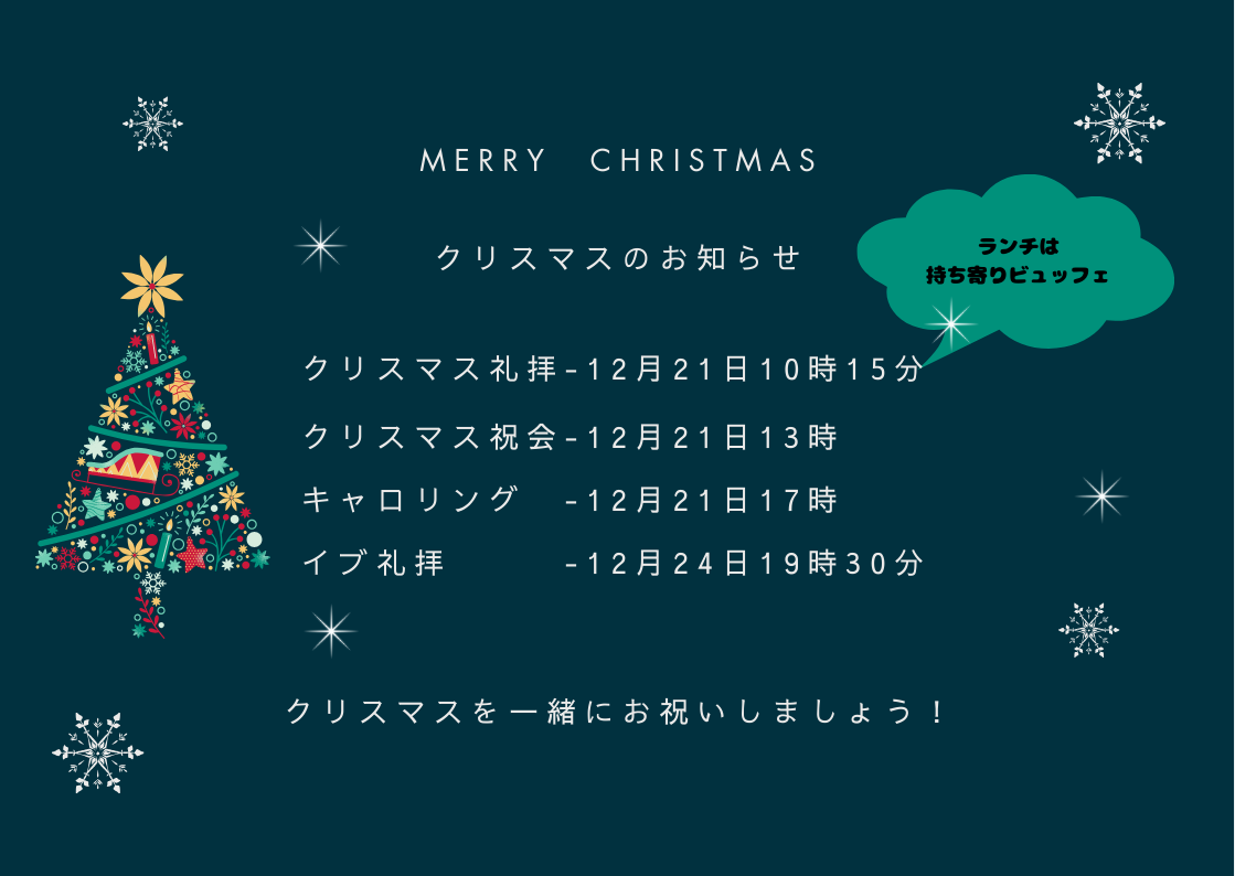 武庫川キリスト教会では、どなたでも参加できるクリスマス礼拝や楽しい祝会をします!